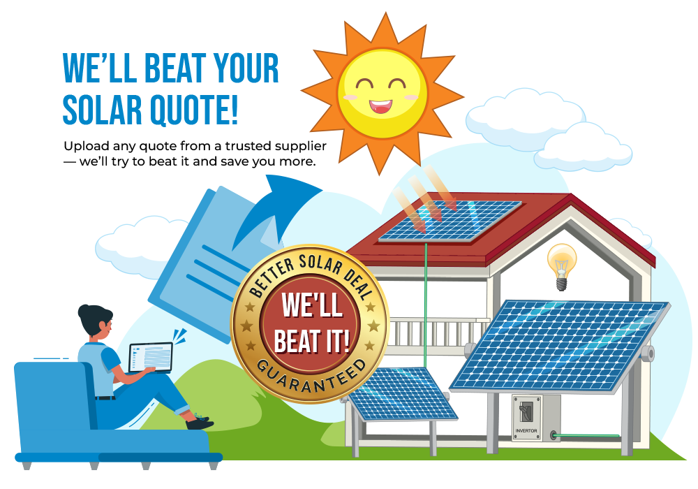 Upload any written quote from a reputable solar supplier and we’ll do our best to beat it — not just on price, but on value, service, and long-term savings.